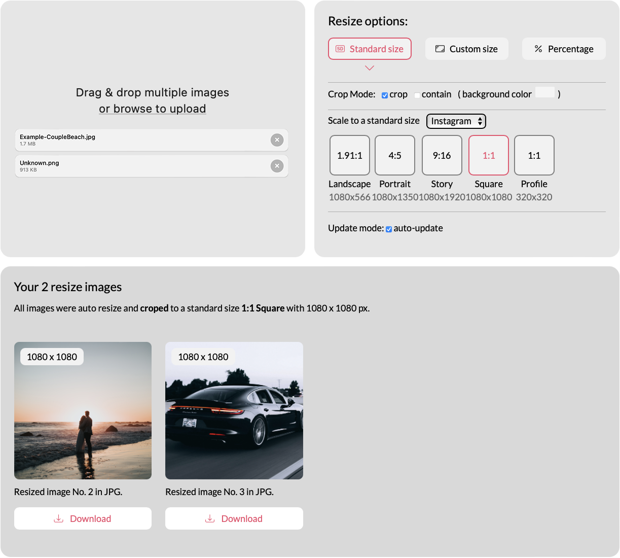 With a free image resize online tool, you could easily select the presets size and crop a single image or multiple images at a glance.
